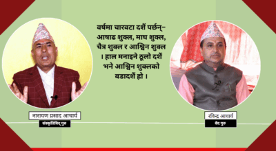 काठमाण्डु - वडादशैं आश्विन शुक्ल प्रतिपदादेखि दशमी र त्यसपछि कोजाग्रत पूर्णिमासम्म मानिने विशेष पर्व वा उत्सव हो । दशैंलाई बडादशैं, दशहरा, विजया दशमी आदि नामले बुझ्ने गरिन्छ । खासगरी आश्विन शुक्ल सप्तमीका दिनदेखि दशमीका दिनसम्मका फूलपाती, महाअष्टमी, महानवमी र विजयादशमी लगातार चार दिनको महापर्व हो । यो हिन्दुहरुको सबैभन्दा ठूलो राष्ट्रिय चाड पनि हो ।…