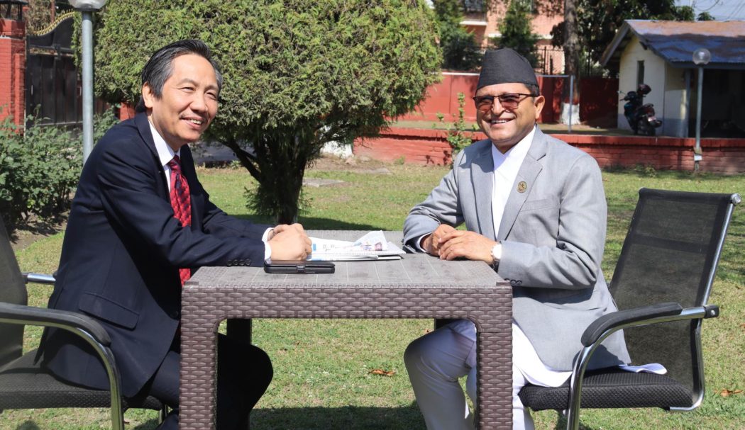 काठमाण्डु - राष्ट्रिय सभाका अध्यक्ष गणेशप्रसाद तिमिल्सिना र भियतनामका पुर्वगृहमन्त्री एबम नेपाल भियतनाम मैत्री संघका अध्यक्ष एचआर ट्रान आन तुआन बीच शिष्टचार भेटघाट भएको छ । अध्यक्ष तिमिल्सिना र भियतनामी प्रतिनिधि मण्डलको नेतृत्व गरेर नेपाल आएको टोलीका नेता पूर्व गृहमन्त्री तुआनबीच अध्यक्ष निवास बालुवाटारमा सोमबार बिहान शिष्टाचार भेटघाट भएको हो । भेटघाटका क्रममा आपसी सहयोग…