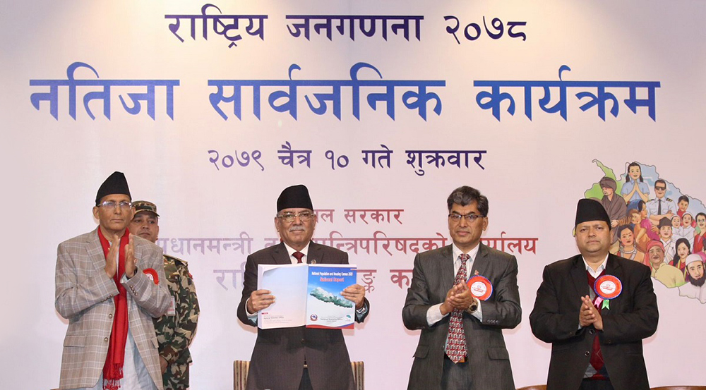 काठमाण्डु - राष्ट्रिय तथ्यांक कार्यालयले १२ औं राष्ट्रिय जनगणना २०७८ को पूर्ण विवरण सार्वजनिक गरेकाे छ। शुक्रबार सोल्टी होटलमा आयोजित एक कार्यक्रमकाबीच प्रधानमन्त्री पुष्पकमल दाहाल 'प्रचण्ड'ले राष्ट्रिय जनगणना २०७८ को नतिजा सार्वजनिक गरेका हुन्। सार्वजनिक भएको पूर्णविवरण अनुसार नेपालको जनसंख्या २ करोड ९१ लाख ६४ हजार ५७८ रहेको छ। वि.स. २०६८ मा नेपालको जनसंख्या दुई करोड…