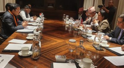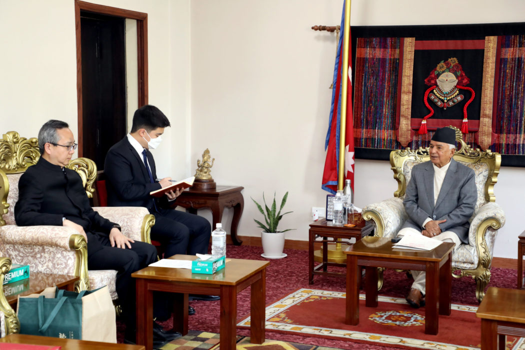 काठमाण्डु - राष्ट्रपति रामचन्द्र पौडेल र नेपालका लागि चिनियाँ राजदूत चेन सङबीच शिष्टाचार भेटवार्ता भएकाे छ । चिनियाँ राजदूत सङले बुधबार राष्ट्रपति भवन शीतलनिवासमा राष्ट्रपति पौडेलसँग शिष्टाचार भेटवार्ता गरेका हुन् । भेटका अवसरमा नेपाल र जनवादी गणतन्त्र चीनबीच रही आएको द्धिपक्षीय सम्बन्ध, पारस्परिक हित र चासोका विषयमा कुराकानी भएको राष्ट्रपति कार्यालयका प्रवक्ता सागर आचार्यले जानकारी…