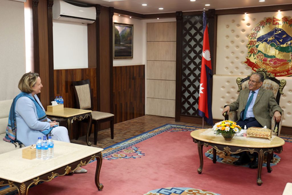 काठमाण्डु - प्रधानमन्त्री पुष्पकमल दाहाल ‘प्रचण्ड’सँग संयुक्त अधिराज्य बेलायतको विदेश, कमनवेल्थ तथा विकास राज्यमन्त्री एन्ने मरी ट्रेभेलियनले शिष्टाचार भेटवार्ता गरेकी छन् । प्रधानमन्त्री निवास बालुवाटारमा आज भएको भेटमा उनीहरुबीच द्विपक्षीय आपसी हितका विविध विषयमा छलफल भएको प्रधानमन्त्रीको सचिवालयले जनाएको छ । नेपाल भ्रमणका क्रममा यसअघि उनी बुधबार हुनमानढोका दरबार क्षेत्रमा नेपालस्थित बेलायती दूतावासले आयोजना गरेको…