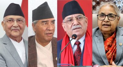 काठमाण्डु - राष्ट्रपति रामचन्द्र पौडेल र नेपाल कम्युनिष्ट पार्टीका नेता तथा पूर्वप्रधानमन्त्रीहरू माधवकुमार नेपाल र झलनाथ खनालबीच भेटवार्ता भएको छ । राष्ट्रपति पौडेलले शनिबार बिहान नेपाली कम्युनिस्ट पार्टीका सहसंयोजकसमेत हरेका नेपाल र अर्का नेता खनालसँग अलगअलग भेटवार्ता गरेका हुन् । भेटवार्तामा समयमै निर्वाचन गराउने, सबै दल र समूहहरूलाई मिलाएर निर्वाचन गराउनेलगायत समसमाहिक विषयमा छलफल भएको…