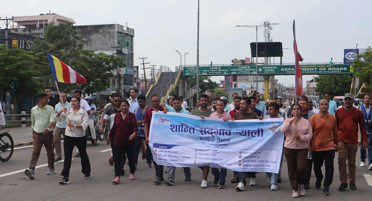 काठमाण्डु - शान्ति र सद्भावको कामना गर्दै भैरहवामा दिभाव र्याली निकालिएको छ। भ्रष्टाचार र बेथिति विरुद्ध गरिएको प्रदर्शनमा मंगलबार सार्वजनिक र निजी सम्पतिहरूमा तोडफोड, लुटपाट, आगजनी गरिएपछि भैरहवासहित देशमा शान्ति-सद्भाव कायम राख्न कामना गर्दै र्याली निकालिएको हो। लुम्बिनी प्रेस क्लबको अगुवाइमा निकालिएको र्यालीमा विभिन्न पेशागत र व्यवसायी संघ संस्थाको सहभागिता थियो। नेपाल–भारत सीमा नाका बेलहियाबाट…