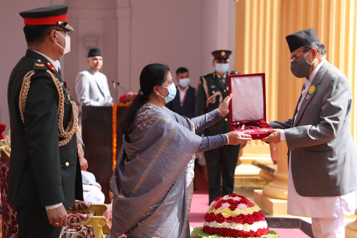 काठमाण्डु – राष्ट्रपति विद्यादेवी भण्डारीले गत असोज ३ गते संविधान दिवसका अवसरमा घोषणा गरिएको मानपद्वी एवम् विभुषण प्रदान गरेकी छन् । राष्ट्रपति भण्डारीले आज शीतल निवासमा आयोजित समारोहमा उपराष्ट्रपति नन्दबहादुर पुनको पनि उपस्थितिमा उक्त मानपदवी र विभूषण प्रदान गरेकी हुन् । यो वर्ष नेपाल रत्न, राष्ट्र गौरव, महाउज्ज्वल राष्ट्रदीप, सुप्रसिद्ध प्रबल जनसेवाश्री, उज्ज्वल कीर्तिमय राष्ट्रदीप,…