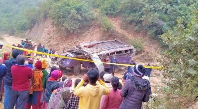 जाजरकोट - नेपालगन्जदेखि राडिबजार आउँदै गरेको ना६ख २७५७ नम्बरको रात्रि बस जाजरकोटमा राति दुई बजे दुर्घटना हुँदा पाँच जनाको मृत्यु भएको छ । कुशे-९ जाजरकोटकी १८ वर्षीया अनिला नेपाली र आठबिसकोट ५ रुकुम पश्चिमकी २४ वर्षीया सन्ध्या मल्ल शाहीको मृत्यु भएको छ । २९ जना घाइतेको उद्धार गरिएको थियो । बस दुर्घटनाका गम्भीर घाइते ६…