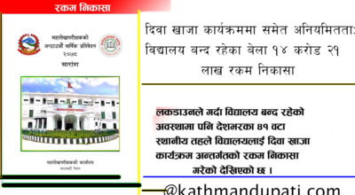 काठमाण्डु - पछिल्लो २४ घण्टामा नेपालमा दुई हजार ७५ जनामा कोरोना सङ्क्रमण पुष्टि भएको छ । योसँगै देशभर सङ्क्रमितको सङ्ख्या आठ लाख २५ हजार ७२२ पुगेको छ । थप सात हजार ७०३ जनाको पिसिआर परीक्षण तथा पाँच हजार ३७२ जनाको एन्टिजेन विधिबाट कोरोना परीक्षण गरिएको थियो । पिसिआर विधिबाट एक हजार ४२४ तथा एन्टिजेनबाट ६५१…