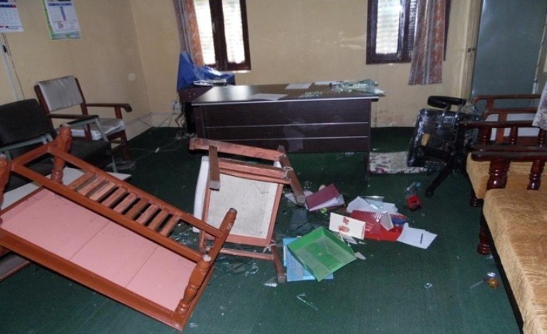 काठमाण्डु – नेविसंघ र अखिल क्रान्तिकारीले बुटवलस्थित लुम्बिनी बाणिज्य क्याम्पसमा तोडफोड गरेका छन् । त्रिविका पुराना पाठ्यक्रम चलाउन र नयाँ थप गरेका पाठ्यक्रम बन्द गर्न दवाव दिइरहेका उनिहरुले आज क्याम्पसमा तोडफोड गरेका हुन् । नेविसंघ र अखिल क्रान्तिकारीले क्याम्पस भवनको झ्लायमा रहेका सीसा फुटाउनुका साथै विभिन्न सामग्री तोडफोड गरेको क्याम्पस प्रशासनले जानकारी दिएको छ ।…