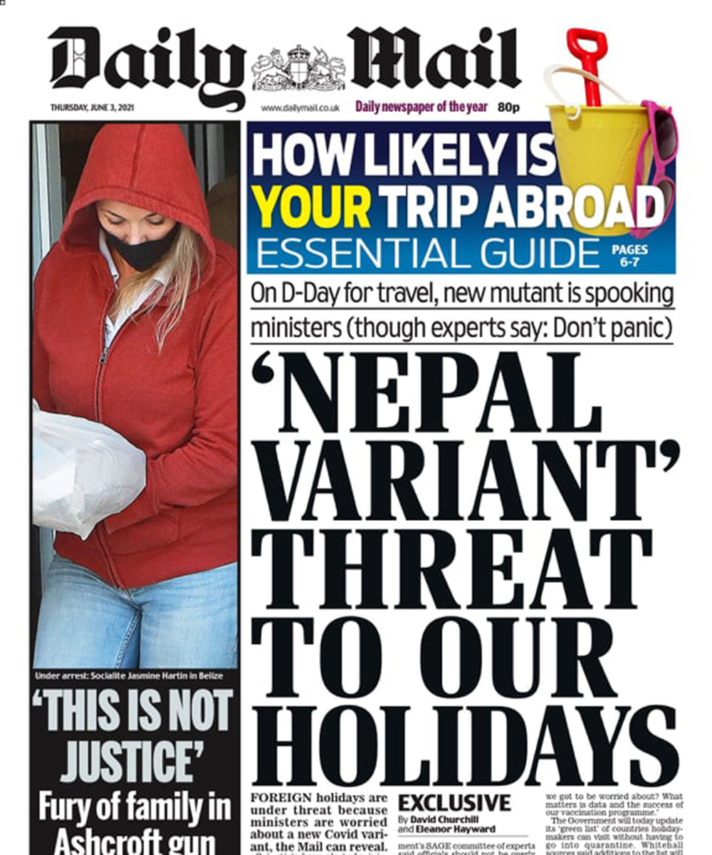 काठमाण्डु - कोरोना भाइरसको नेपाली भेरिएन्ट फैलिएको भन्दै बेलायत सरकार चिन्तामा परेको छ । लामो समयसम्म विभिन्न प्रतिबन्ध लगाएपछि अहिले विस्तारै खुकुलो बनाउँदै जाने बेलायती सरकारको नीतिलाई नेपाली भेरिएन्टले प्रभाव पार्ने जोखिम भएको बेलायती अखबार डेलीमेलले दावी गरेको छ । डेलीमेलले समाचारको शीर्षकमै ‘हाम्रो विदामा नेपाली भेरिएन्टको जोखिम’ लेखेको छ । समाचारमा वैज्ञानिकहरुले बेलायती मन्त्रीहरुलाई…