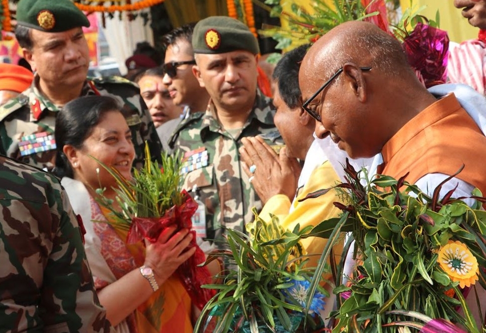 जनकपुर - रामजानकी विवाह महोत्सवको चौथो दिन शुक्रबार तिलकोत्सव समारोहमा राष्ट्रपति विद्यादेवी भण्डारी जनकपुरमा गएकी छन् । महोत्सवमा गएकी राष्ट्रपति भण्डारीले जानकी मन्दिरमा विशेष पूजासमेत गरेकी छिन् । जानकी मन्दिरको पूजापछि भण्डारी प्रदेश सरकारले आयोजना गरेको भोजमा सहभागी हुनेछिन्। विवाह महोत्सवअन्तर्गत जनकपुरको रंगभूमि मैदान बाह्र बिघामा तिलक समारोह आयोजना गरिएको छ। राष्ट्रपति भण्डारी समारोहमा सम्बोधन…