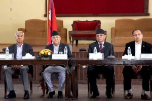 काठमाडौँ - प्रधानमन्त्री केपी शर्मा ओलीले ’देश समृद्धिको यात्रामा अघि बढेकाले शान्ति सुरक्षा कायम गरेर अघि बढ्नु पर्ने बताएका छन् । ‘प्रहरीले कसैको दबाव मान्नु पर्दैन, निष्पक्ष ढंगले छानबिन गर्नुपर्छ’, प्रधानमन्त्रीले भने, ‘यसले मात्रै शान्ति सुरक्षा कायम हुनसक्छ ।’देश समृद्धिको यात्रामा अघि बढेकाले शान्ति सुरक्षा कायम गरेर अघि बढ्नु पर्ने प्रधानमन्त्रीले बताए । ‘कुन पार्टी…