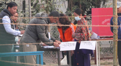 काठमाण्डु - दोलखाको गौरीशंकर गाउँपालिका ९ बेदिङमा मतदाताहरूले निर्वाचन बहिष्कार गरेका छन् । दुर्गम बस्ती बेदिङका स्थानीयवासीले उम्मेदवारहरू गाउँमै मत माग्न नआएको भन्दै मतदान नै बहिष्कार गरेका हुन् । बिहीबार बिहान साढे ११ बजेसम्म कोही पनि मतदाता मतदान केन्द्रमा गएका छैनन् । कर्मचारीहरू पर्खिरहेको प्रमुख जिल्ला अधिकारी हरी प्रसाद घिमिरेले बताए । बेदिङमा रहेका १…