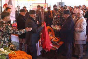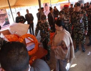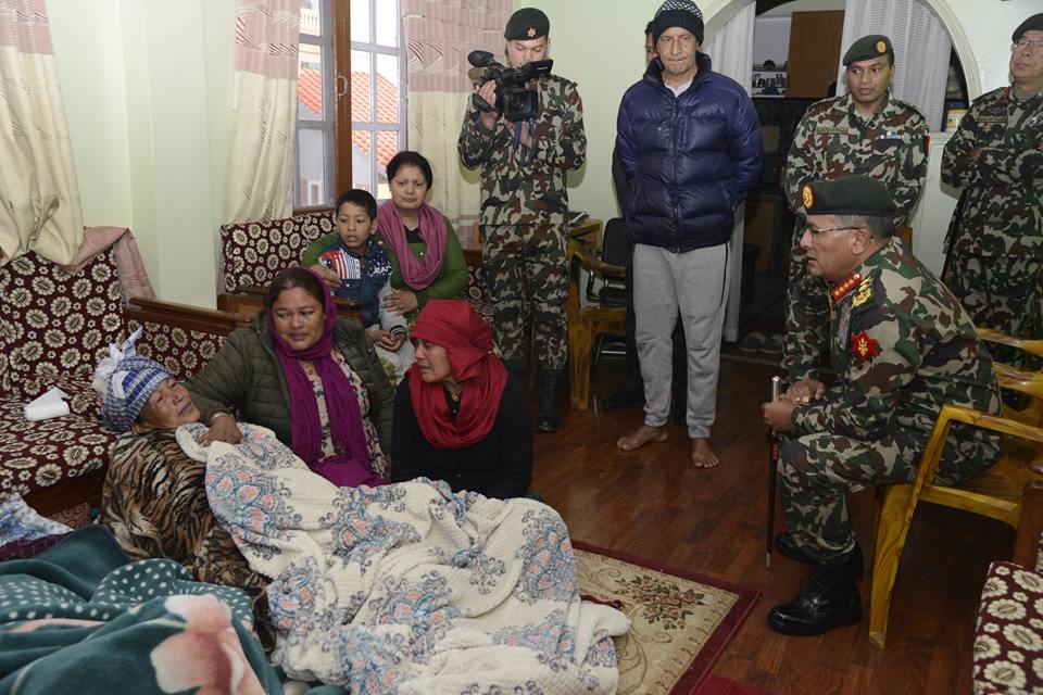 काठमाडौं - प्रधानसेनापति पूर्णचन्द्र थापाले ताप्लेजुङ्ग हेलिकोप्टर दुर्घटनामा परी मृत्यु भएका जमदार अर्जुन घिमिरेको शोकसन्तप्त परिवारलाई उनको निवासमा पुगेर भेट गरेका छन् । सेनापति थापाले स्वर्गीय घिमिरेको परिवारलाई भेट गरि समवेदना प्रकट गरेका छन् । तेह्रथुमका चिहानडाँडामा विमानस्थलको सम्भाव्यता अध्ययनका लागि मन्त्री रविन्द्र अधिकारीसहितको टोली त्यहाँ पुगेको थियो । कार्यक्रम सकेर पाथीभरा हुँदै काठमाडौं फर्किने…
