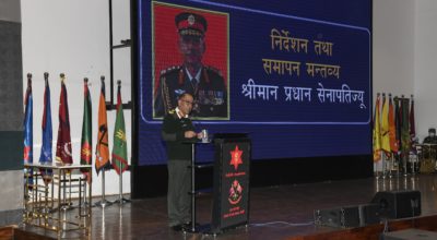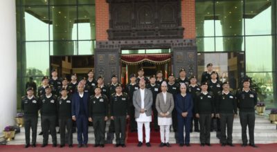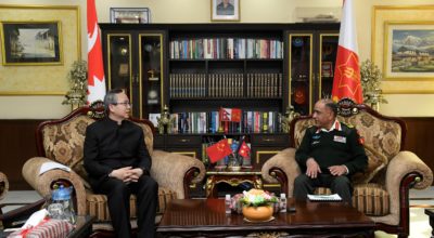 काठमाण्डु - प्रधानसेनापति प्रभुराम शर्मा र अमेरिकी उपसहायक विदेशमन्त्री अफरिन अख्तरबीच शिष्टचार भेटवार्ता भएकाे छ । मंगलबार प्रधानसेनापति शर्मा र अमेरिकी उपसहायक विदेशमन्त्री अफरिनबीच जंगी अड्डामा भेटवार्ता भएकाे हाे । प्रधानसेनापति शर्माको कार्यकक्षमा भएको उक्त भेटघाटमा द्विपक्षीय हित तथा पारस्परिक सम्बन्धका विषयमा छलफल भएको सैनिक जनसम्पर्क तथा सूचना निर्देशनालयले जनाएको छ। दक्षिण तथा मध्य एशियाली…