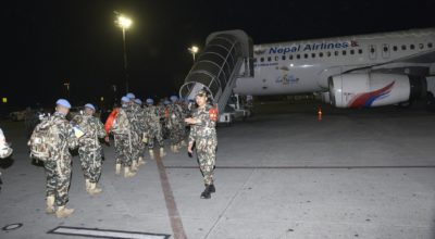 काठमाण्डु – संयुक्त राष्ट्रसंघका महासचिवका सल्लाहकार जनरल ब्रियाम डिओप नेपाल आइपुगेका छन् । राष्ट्रसंघ स्थापना दिवसको अवसरमा नेपाली सेनाले आयोजना गरेको २ दिने विशेष कार्यक्रममा सहभागी हुन ब्रियाम आइतबार काठमाण्डु आएका हुन् । उनलाई त्रिभुवन अन्तर्राष्ट्रिय विमानस्थलमा उपत्यका पृतना हेड क्वार्टरका पृतनापति उपरथि योगराज शर्माले स्वागत गरेका थिए । आजै काठमाण्डु आइपुगेका उनले सैनिक मुख्यालय…