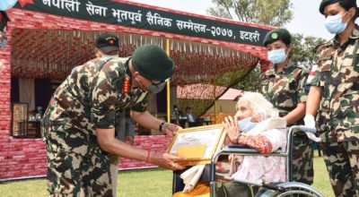 काठमाण्डु – सैनिक कल्याणकारी कोषको कूल सम्पत्ति ५८ अर्बभन्दा बढी पुगेको छ । प्रधानसेनापति पूर्णचन्द्र थापाले पूर्वी पृतनामा आयोजित भूतपूर्व सैनिक सम्मेलनमा सैनिक कल्याणकारी कोषको रकम गत पुस मसान्तसम्म ५८ अर्बभन्दा बढी पुगेको जानकारी दिए । विसं २०३२ मा संयुक्त राष्ट्रसङ्घको मिसनअन्तर्गत मध्यपूर्वमा सेना सहभागी भएवापत प्राप्त भएको एक करोड २४ लाख राशिबाट उक्त कोष…