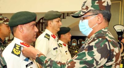 काठमाण्डु – सैनिक सेवामा उच्च तहमा पुग्न अनिवार्य मानिएको २८आँै समूहको कमाण्ड तथा स्टाफ तालीम शुरुभएको छ । शिवपुरीस्थित सैनिक कमाण्ड तथा स्टाफ कलेजमा आज आयोजित कार्यक्रममा बलाधिकृत रथी प्रभुराम शर्माले तालीम शुभारम्भ गर्दै सफलताका लागि शुभकामनाा व्यक्त गरे । सो अवसरमा तालीममा सहभागी विदेशी शिक्षार्थीबाट कलेज परिसरमा आआफ्नो देशको झण्डोत्तोलन गरिएको थियो । मध्यम…