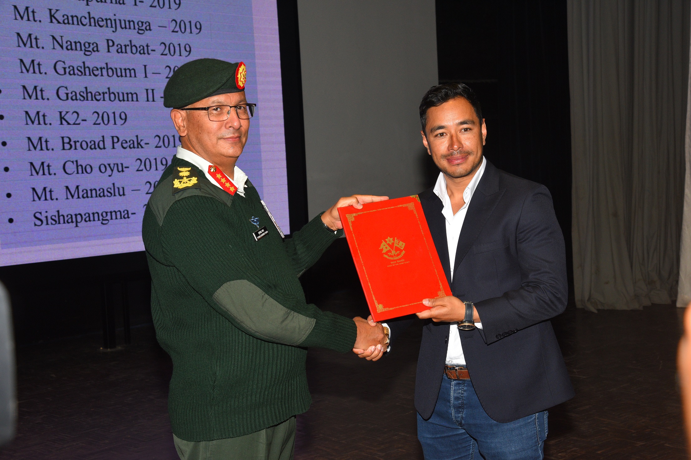 काठमाण्डु –नेपाली सेनाले पाकिस्तानमा रहेको विश्वको दोस्रो अग्लो हिमाल माउण्ट केटू (८६११) को विन्टर सिजनमा प्रथम पटक सफल आरोहण गरी विश्व किर्तिमान राख्न सफल नेपाली आरोहण दलका सदस्यहरुलाई सम्मान गरेको छ । प्रधानसेनापति पूर्णचन्द्र थापाको प्रमुख आतिथ्यतामा जङ्गी अड्डामा आयोजित विशेष समारोहकाबीच सेनाले कदरपत्र प्रदान गरी सम्मान गरेको छ । राष्ट्रिय गानबाट शुरु गरिएको उक्त…