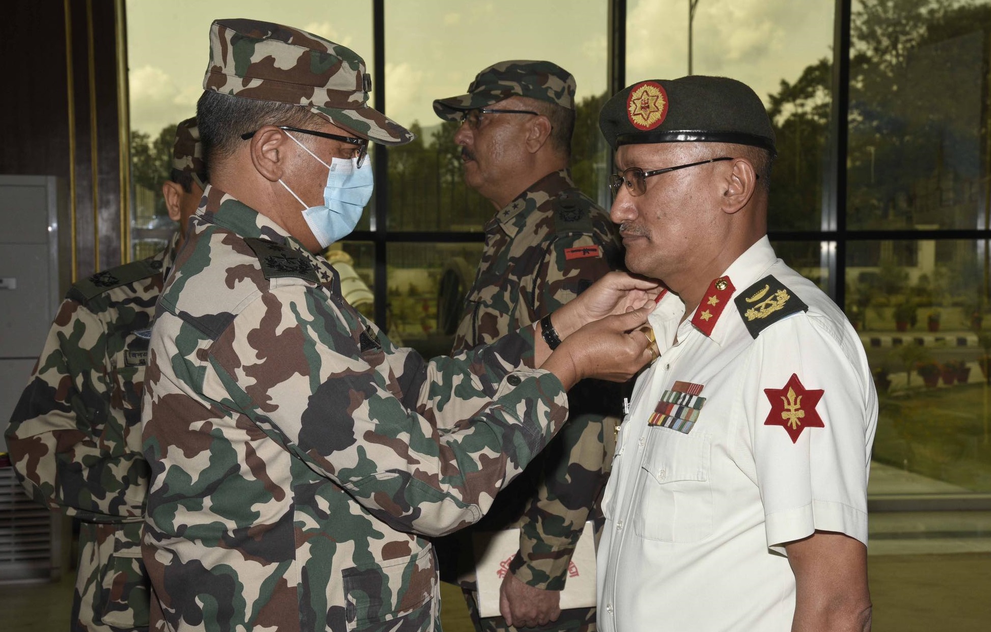 काठमाडौं – प्रधानसेनापति पूर्णचन्द्र थापाले वीरेन्द्र अस्पतालमा कार्यरत प्राविधिक रथीबृन्द तथा अधिकृतहरुलाई दर्ज्यानी चिन्ह प्रदान गरेका छन् । जेठ १२ गतेको मन्त्रिपरिषद् बैठकको निर्णय अनुसार आज जंगी अड्डामा आयोजित कार्यक्रममा उनीहरुलाई प्रधानसेनापति थापाले दर्ज्यानी चिन्ह प्रदान गरेका हुन् । सो समारोहमा प्राविधिक उपरथी दर्जामा पदोन्नति भएका वीरेन्द्र अस्पतालका सहायक रथी डा. नगेन्द्र बहादुर के.सी., प्राविधिक…