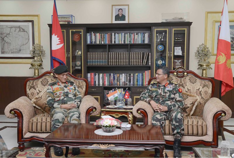 काठमाडौं - प्रधानसेनापति पूर्णचन्द्र थापा र भारतीय सेनाका मेजर जनरल गोपाल गुरुङबीच जंगी अड्डामा शिष्टाचार भेटवार्ता भएको छ । उक्त भेटवार्तामा उनीहरुबीच दुई पक्षीय आपसी हित तथा पारस्परिक सम्बन्धका विषयमा छलफल भएको थियो । रुपन्देही जिल्लाको सालझण्डीस्थित नेपाली सैनिक व्याट्ल स्कूलमा मंसिर १७ गतेदेखि सञ्चालन भएको नेपाली सेना र भारतीय सेनाको संयुक्त अभ्यास INDO-NEPAL BATTALION…