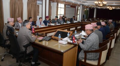 काठमाण्डु- प्रधानमन्त्री सुशीला कार्कीले निर्वाचन आयोगका प्रमुख र सुरक्षा निकायका उच्च अधिकारीसँग छलफल गरेकी छन्। शुक्रबार प्रधानमन्त्री निवास बालुवाटारमा आगामी निर्वाचनको तयारी र सुरक्षा व्यवस्थालगायतका विषयमा छलफल गरेकी हुन् । कार्यवाहक प्रमुख निर्वाचन आयुक्त रामप्रसाद भण्डारी, आयुक्तद्वय जानकी तुलाधर, सगुनशमशेर जबरा, सचिव कृष्णबहादुर राउतलगायत अधिकारीको उपस्थिति थिए। त्यस्तै अर्थमन्त्री रामेश्वर खनाल, कानुनमन्त्री अनिलकुमार सिन्हा, शिक्षामन्त्री…