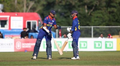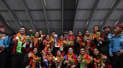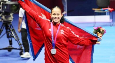 काठमाण्डु– साफ यू –१७ च्याम्पियनसिप अन्तर्गत नेपालले श्रीलंकाविरुद्ध सानदार जित हात पारेको छ । भुटानको चाङ्लिमिथाङ रङ्गशालामा सोमबार सम्पन्न खेलमा नेपालले श्रीलंकालाई ४–० गोल अन्तरले पराजित गरेको हो । नेपालको जितमा सुजन डंगोलले ह्याट्रिक गरेका थिए भने विज्ञान खड्काले एक गोल गरेका थिए । प्रतियोगितामा नेपालले यसअघि शनिबार सम्पन्न खेलमा पाकिस्तानसँग १–० गोलको हार बेहोरेको…