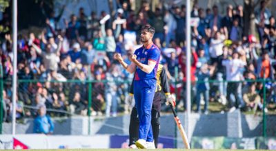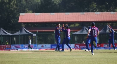 काठमाण्डु- टी २० विश्वकप छनोट प्रतियोगिताको सेमिफाइनल खेल अन्तर्गत नेपाल र संयुक्त अरब इमिरेट्स (यूएई) बीच प्रतिस्पर्धा भइरहेको छ । यूएईले टस जितेर पहिले ब्याटिङ गरिरहेको छ । यसैबीच यूएईले लगातार आफ्नो पहिलो र दोस्रो विकेट गुमाएको छ । यूएईले पहिलो विकेटका रुपमा ओपनर ब्याट्सम्यान खालिद शाहलाई गुमाएको हो । उनलाई सोमपाल कामीले रन आउट…