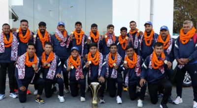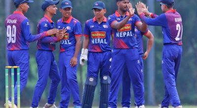 काठमाण्डु - नेपालले त्रिकोणात्मक टि-२० आई सिरिजको उपाधिका लागि युएईलाई १६३ रनको लक्ष्य दिएको छ। शुक्रबार टियु क्रिकेट मैदानमा टस हारेर ब्याटिङ थालेको नेपालले २० ओभरमा ८ विकेट गुमाउँदै १६२ रन बनाएको हाे । नेपालका लागि ओपनर कुशल भुर्तेलले अर्धशतक पारी खेले । भुर्तेलले २८ बलमा ३ छक्का र ६ चौका मद्दतमा ५० रन बनाए…