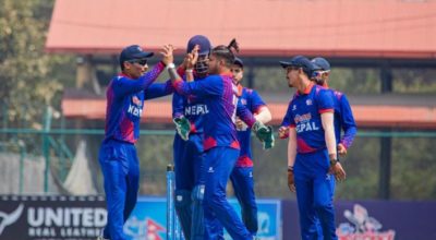 काठमाण्डु - नेपालले त्रिकोणात्मक टि-२० आई सिरिजको उपाधिका लागि युएईलाई १६३ रनको लक्ष्य दिएको छ। शुक्रबार टियु क्रिकेट मैदानमा टस हारेर ब्याटिङ थालेको नेपालले २० ओभरमा ८ विकेट गुमाउँदै १६२ रन बनाएको हाे । नेपालका लागि ओपनर कुशल भुर्तेलले अर्धशतक पारी खेले । भुर्तेलले २८ बलमा ३ छक्का र ६ चौका मद्दतमा ५० रन बनाए…