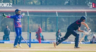 काठमाण्डु – मलेसियाको क्वालालाम्पुरस्थित बायोमास ओभलमा जारी यू–१९ प्रिमियर कपको फाइनल खेल वर्षाका कारण प्रभावित भएको छ । नेपाल र यूएईबीचको फाइनल खेल वर्षाले प्रभावित भएको छ । टस जितेर पहिले ब्याटिङ गरेको नेपालले कप्तान देव खनालको शतक मद्दतमा निर्धारित ५० ओभरमा ८ विकेट गुमाएर २८० रन बनाएको छ । जीतका लागि २८१ रनको लक्ष्य…
