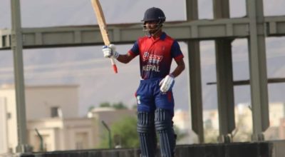 काठमाण्डु – एसिया कप क्रिकेटअन्तर्गत भारतविरुद्ध खेलिरहेको नेपालले ४० ओभरमा १८४ रन बनाएको छ । नेपालले ६ विकेटको क्षतिमा १८४ रन बनाएको हो । केहीबेर वर्षाका कारण रोकिएको खेल फेरि सुरु भएको छ ।