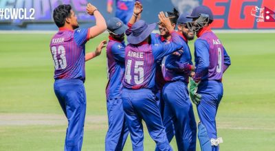काठमाण्डु - युनाइटेड अरब इमिरेट्स (युएई) मा जारी आईसीसी पुरुष क्रिकेट विश्वकप लिग-२ अन्तर्गतको एकदिवसीय अन्तर्राष्ट्रिय सिरिजमा नेपालले पपुवा न्यूगिनी (पीएनजी) विरुद्ध पहिलो विकेट हात पारेको छ । दुबई इन्टरनेसनल स्टेडियममा टस जितेर पहिले ब्याटिङ गरिरहेको पीएनजीले पहिलो विकेट गुमाएको छ । नेपाली लेग स्पिनर सन्दीप लामिछानेले नेपाललाई पहिलो सफलता दिलाए । उनले ११ औँ…