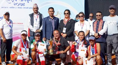 काठमाण्डु – नवौं राष्ट्रिय खेलकुदअन्तर्गत पुरुष ४०० मिटरमा त्रिभुवन आर्मी क्लबका सोम कुमालले स्वर्ण पदक जितेका छन् । मंगलबार भएको खेलमा उनले निर्धारित दुरी ४७.९५ सेकेण्डमा पूरा गर्दै नयाँ राष्ट्रिय कीर्तिमानसहित स्वर्ण पदक जितेका हुन् । यसअघि सन् १९९० मा आशाराम चौधरीले चीनमा सम्पन्न एसियन गेम्समा राखेको ४८.३२ सेकेण्डको कीर्तिमान यसपटक कुमालले तोडेका हुन् ।…
