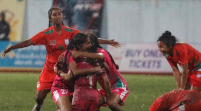 काठमाण्डु - नेपाल बंगलादेशविरुद्धको मैत्रीपूर्ण खेलमा विजयी भएको छ । नेपाल ३-१ ले विजयी भएको हो । नेपालको जितमा अन्जन विष्ट नायक बने । उनको ह्याट्रिकमा नेपालले सहज जित निकालेको हो । अन्जन मोस्ट भ्यालुएबल प्लेयर घोषित भए । बंगलादेशका सजाद होसेनले एक गोल फर्काए । सुरुआतमा बंगलादेश आक्रामक देखिएको थियो । सातौं मिनेटमा गोलकिपर…