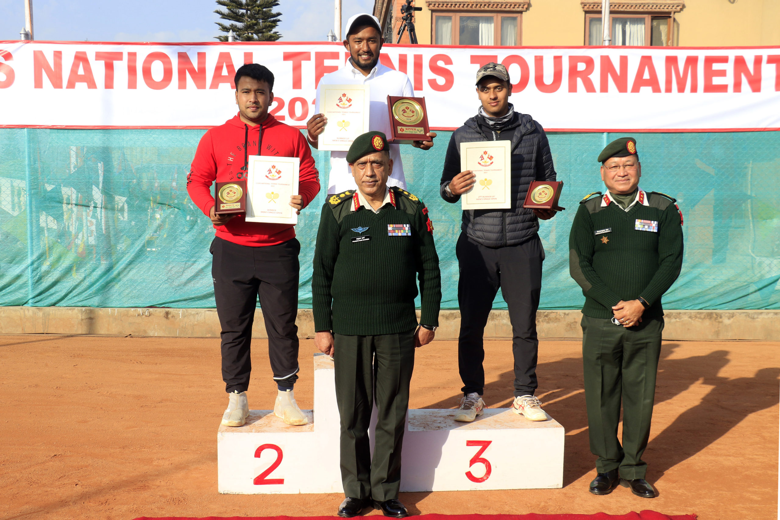 काठमाण्डु – प्रधानसेनापति प्रथम राष्ट्रिय लन टेनिस प्रतियोगितामा पुरुष सिङ्गलतर्फको उपाधि कास्की पोखराका प्रदीप खड्काले जितेका छन् । सैनिक मुख्यालय परिसरमा आज आयोजित प्रतियोगितामा बुटवलका ऋतिक रानालाई सिधा सेटमा पराजित गर्दै उनले उपाधि जितेका हुन् । प्रधानसेनापति प्रभुराम शर्माले प्रतियोगिताका विजयी र उपविजयी खेलाडीलाई क्रमशः जनही ५० हजार र २५ हजार नगद तथा प्रमाणपत्र प्रदान…