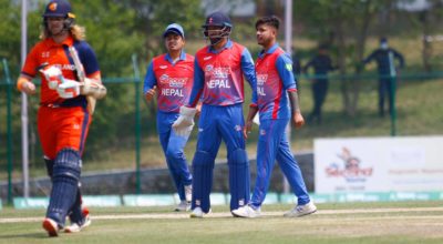 काठमाण्डु – नेपालले मलेसियालाई २ सय १८ रनको लक्ष्य दिएको छ । त्रिकोणात्मक टी–ट्वान्टी क्रिकेट सिरिजअन्तर्गत बिहीबार अन्तिम खेलमा टस हारेर पहिले ब्याटिङ गरेको नेपालले निर्धारित २० ओभरमा ७ विकेटको क्षतिमा २१७ रन बनाएको हो । नेपालका लागि करण केसीले सर्वाधिक ४५ रन बनाए । नेपालका लागि कुशल भुर्तेलले १६, आसिफ सेखले ४२, कप्तान ज्ञानेन्द्र…