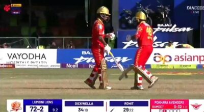 काठमाण्डु – नेपाल प्रिमियर लिग (एनपीएल) सिजन–२ मा काठमाण्डु गोर्खाजले चौथो जीत निकालेको छ । आफ्नो छैटौं खेलमा काठमाण्डुले कर्णाली याक्सलाई ५ विकेटले पराजित गर्दै चौथो जीत निकालेको हो । कर्णालीले दिएको १५० रनको लक्ष्य काठमाण्डुले १८ ओभरमा ५ विकेट गुमाएर पूरा गरेको हो । यससँगै एनपीएलमा काठमाण्डुले ६ खेलमा चौथो जीत दर्ता गरेको छ…
