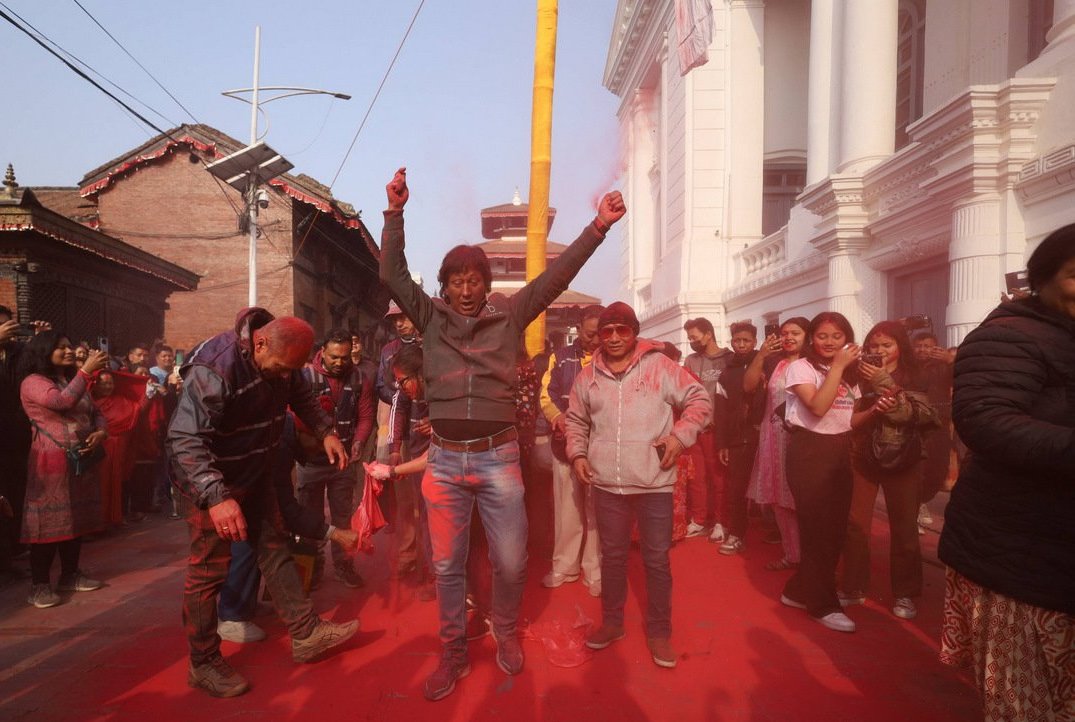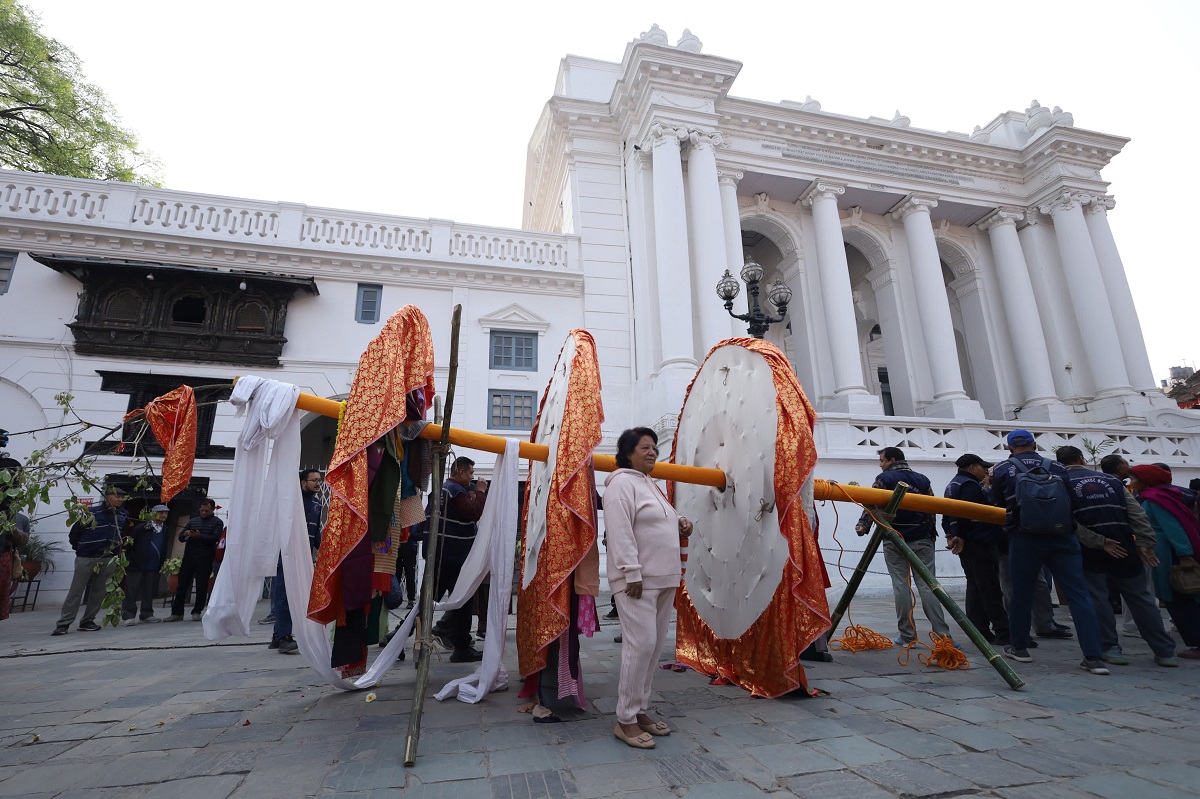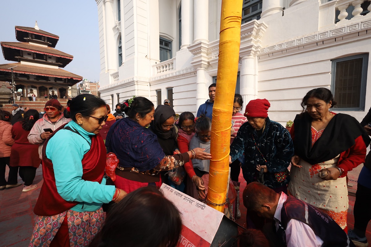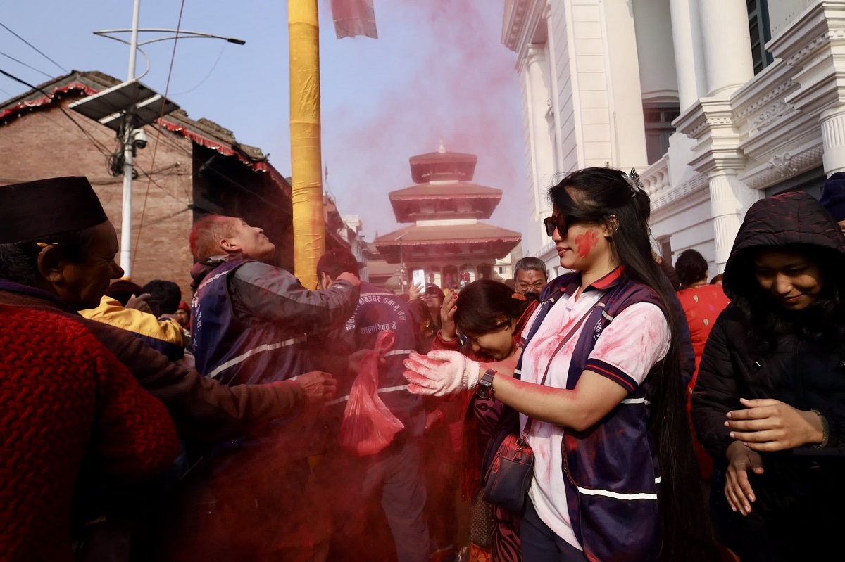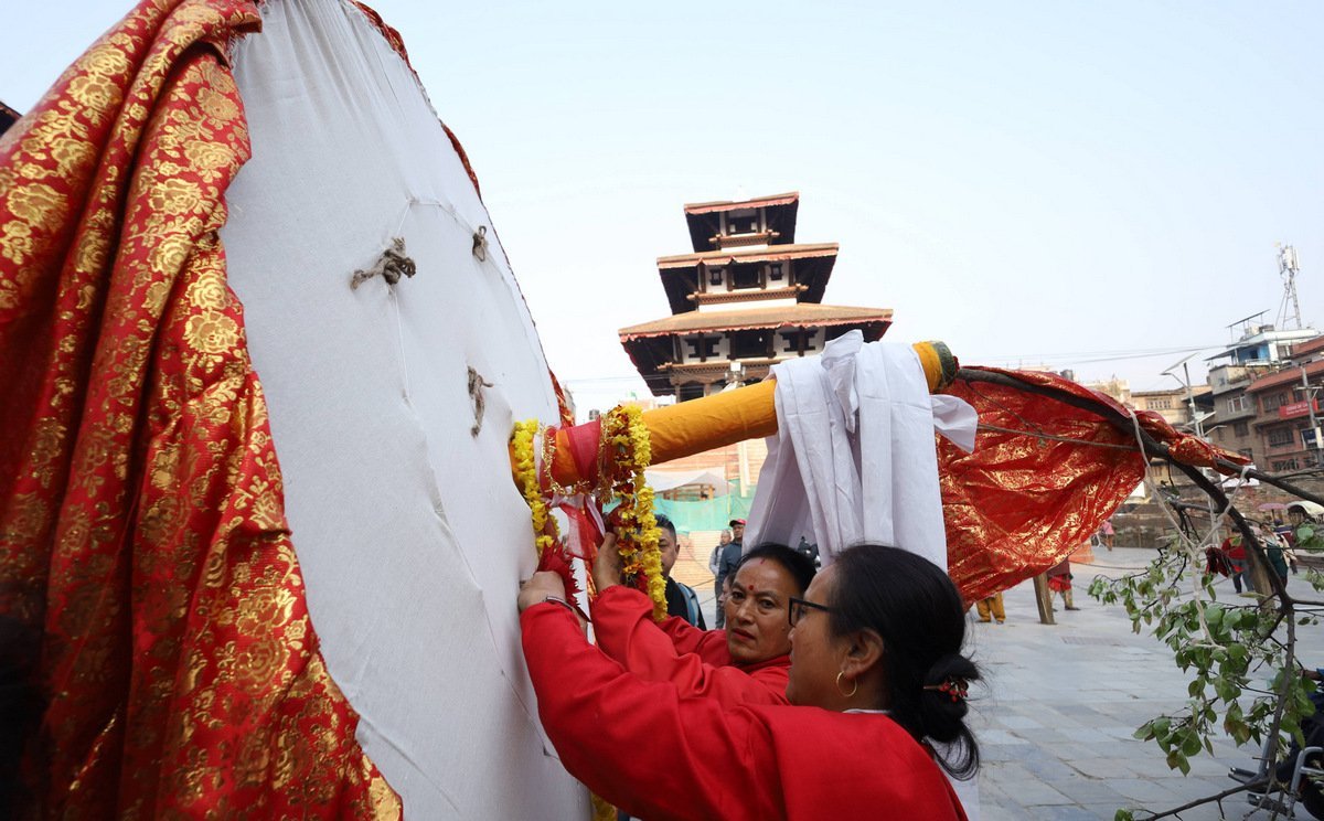 हनुमानढोका दरबारको दक्षिण पटाङ्गिनी, ऐतिहासिक मोहनकाजी चोक तथा दाखचोकमा ३२ फुट उचाइको तीन खण्डे गजुर जस्तो देखिने रङ्गीबिरङ्गी होली चीर ठड्याइएको हो।