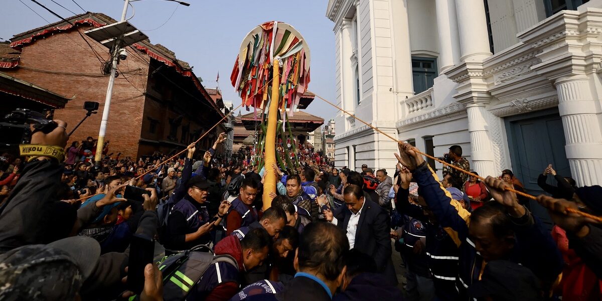 हनुमानढोका दरबारको दक्षिण पटाङ्गिनी, ऐतिहासिक मोहनकाजी चोक तथा दाखचोकमा ३२ फुट उचाइको तीन खण्डे गजुर जस्तो देखिने रङ्गीबिरङ्गी होली चीर ठड्याइएको हो।