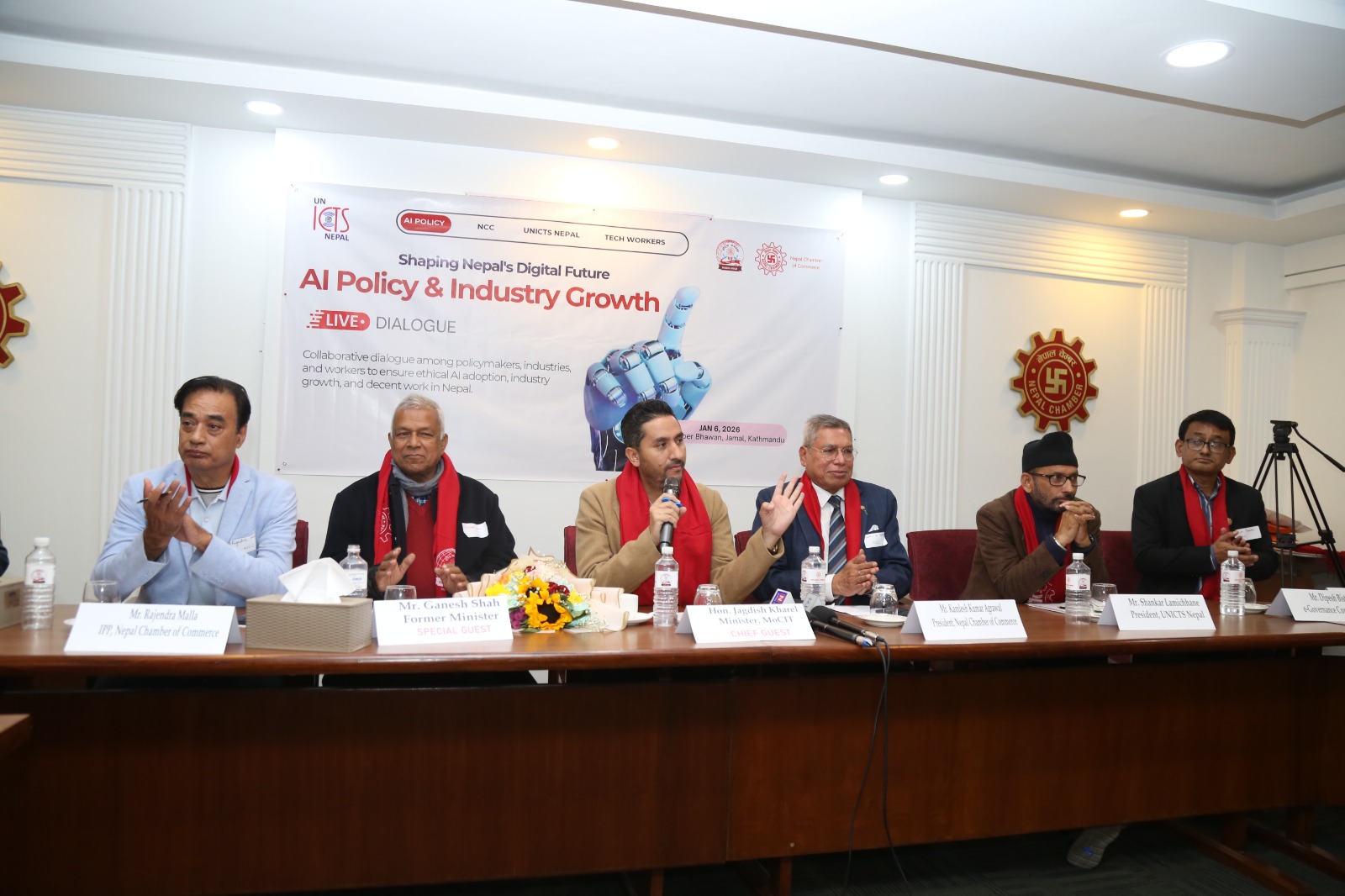 कार्यक्रममा नेपाल चेम्बर अफ कमर्सका अध्यक्ष कमलेश कुुमार अग्रवालले एआई केवल प्रविधिको विषय मात्र नभई आर्थिक पारदर्शिता, उद्यमशिलता प्रवर्द्धन र रोजगारी सिर्जनाको महत्त्वपूर्ण आधार बन्दै गएको बताए । डिजिटल रूपान्तरणमार्फत सार्वजनिक सेवालाई प्रभावकारी बनाउने, व्यावसायिक लागत घटाउने र निर्णय प्रक्रियामा पारदर्शिता ल्याउन एआईको भूूमिका महत्त्वपूर्ण हुने अध्यक्ष अग्रवालको भनाइ छ ।