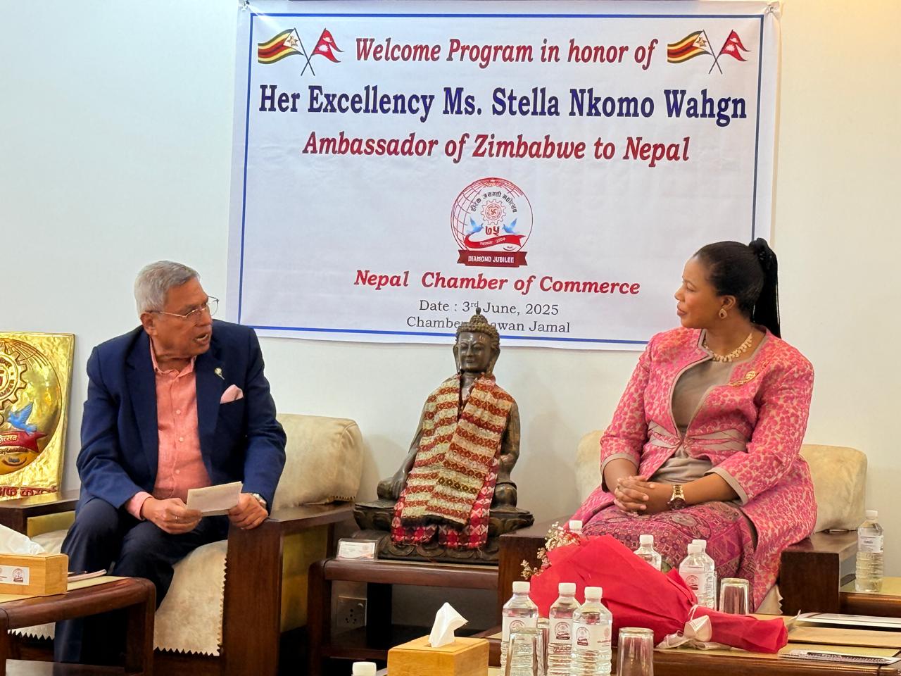 काठमाण्डुको जमलस्थित चेम्बर भवनमा आयोजित कार्यक्रममा चेम्बरका अध्यक्ष कमलेश कुमार अग्रवाल र नेपालका लागि जिम्बावेका राजदूत स्टेला न्होकोमोबीच व्यापार साझेदारी, लगानीको अवसर, जलवायु परिवर्तन विरुद्धको कदम लगायतका विषयमा सहकार्य गर्नेबारे छलफल भएको हो ।