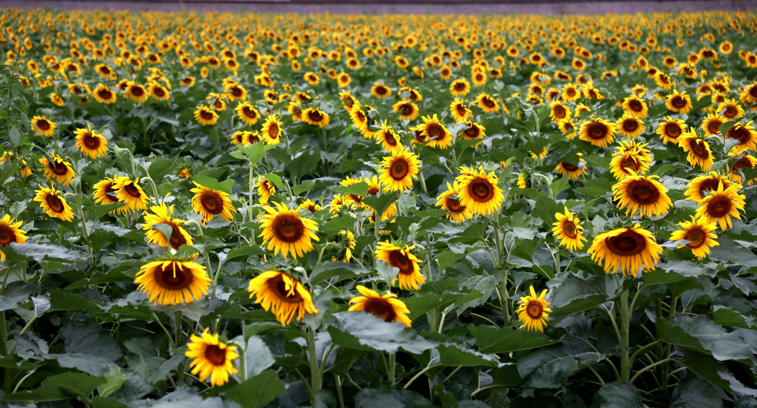 चीनको ग्रामीण पुनरुत्थान परियोजना टोङ्फु गाउँ (काउन्टी)का कृषकले खेतमा लगाइएको सूर्यमुखी फूल ।