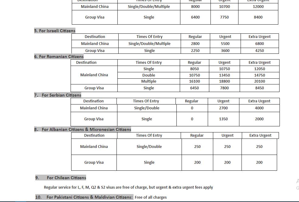त्यस्तै, अन्य देशका नागरिकसँग भिसाबापत लिँदै आएको शुल्कमा पनि चीनले वृद्धि गरेको छ । अमेरिकी नागरिकसँग यसअघि १५ हजार रुपैयाँ भिसा शुल्क लिँदै आएकोमा त्यसलाई बढाएर १९ हजार रुपैयाँ पुर्याइएको छ ।