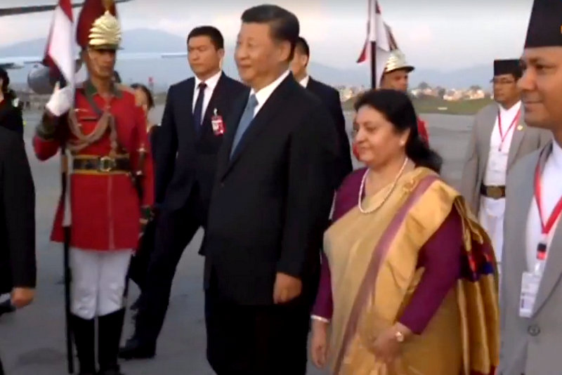 राष्ट्रपति सीलाई नेपाली सेनाको एक टुकडीले सलामी अर्पण गरेको छ। त्रिभुवन अन्तर्राष्ट्रिय विमानस्थलमा राष्ट्रपति सीलाई उच्च सम्मान प्रदान गरिएको छ। दुई दिने अनौपचारिक भारत भ्रमणबाट राष्ट्रपति सी चेन्नइबाट नेपालका लागि उडेका थिए। उनको विमान अन्तर्राष्ट्रिय त्रिभुवन विमानस्थलमा ४ स् ३० बजे अवतरण गरेको थियो। उनी ५ बजे विमानबाट बाहिर निस्केका थिए। चिनियाँ राष्ट्रपतिको २३ वर्षपछि हुन लागेको यो भ्रमणलाई विशेष महत्वका साथ हेरिएको छ।