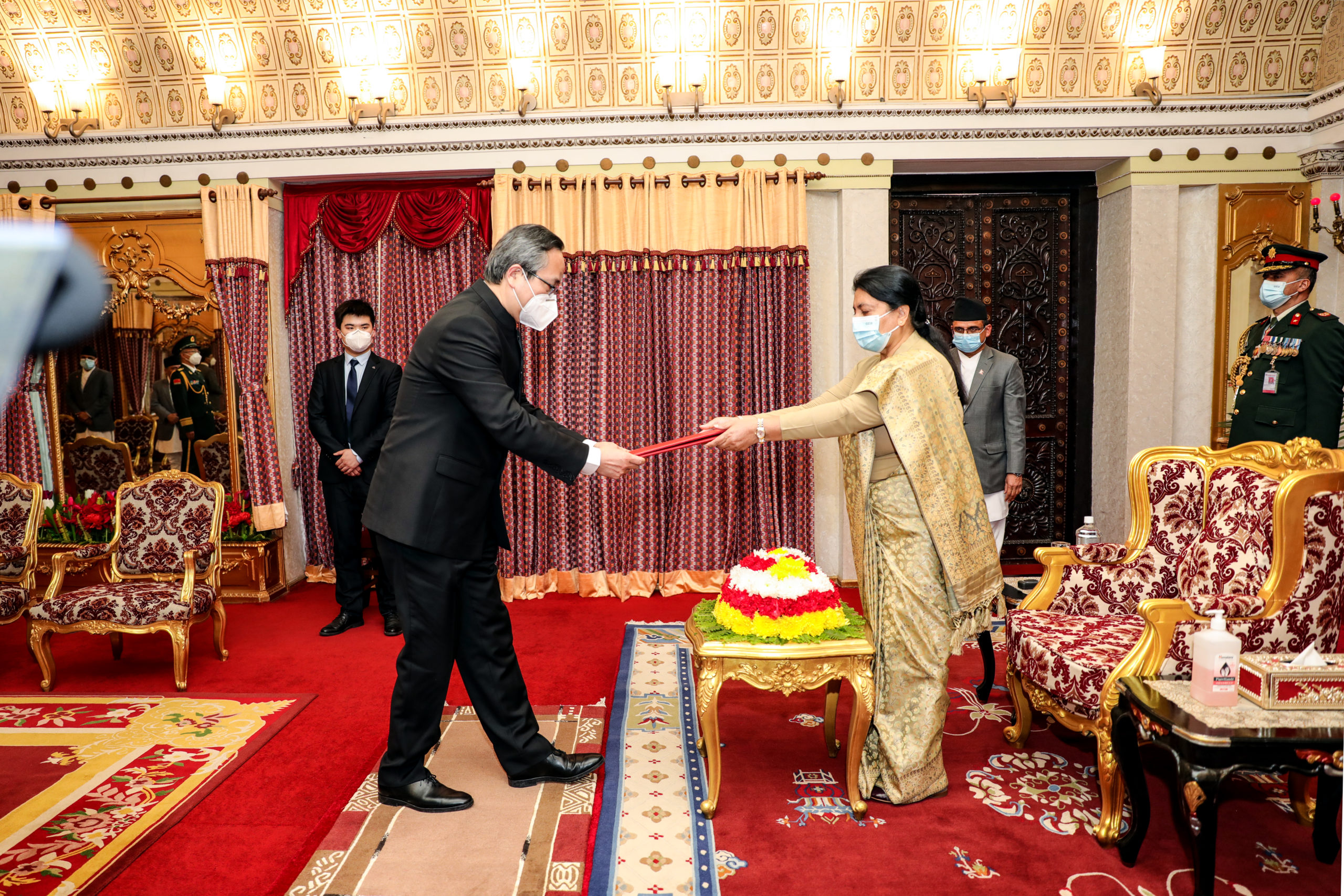 काठमाण्डु – नेपालका लागि जनवादी गणतन्त्र चीनका आवासिय राजदुत चेन सङले शुक्रबार राष्ट्रपति विद्यादेवी भण्डारी समक्ष ओहोदाको प्रमाणपत्र बुझाएका छन्।