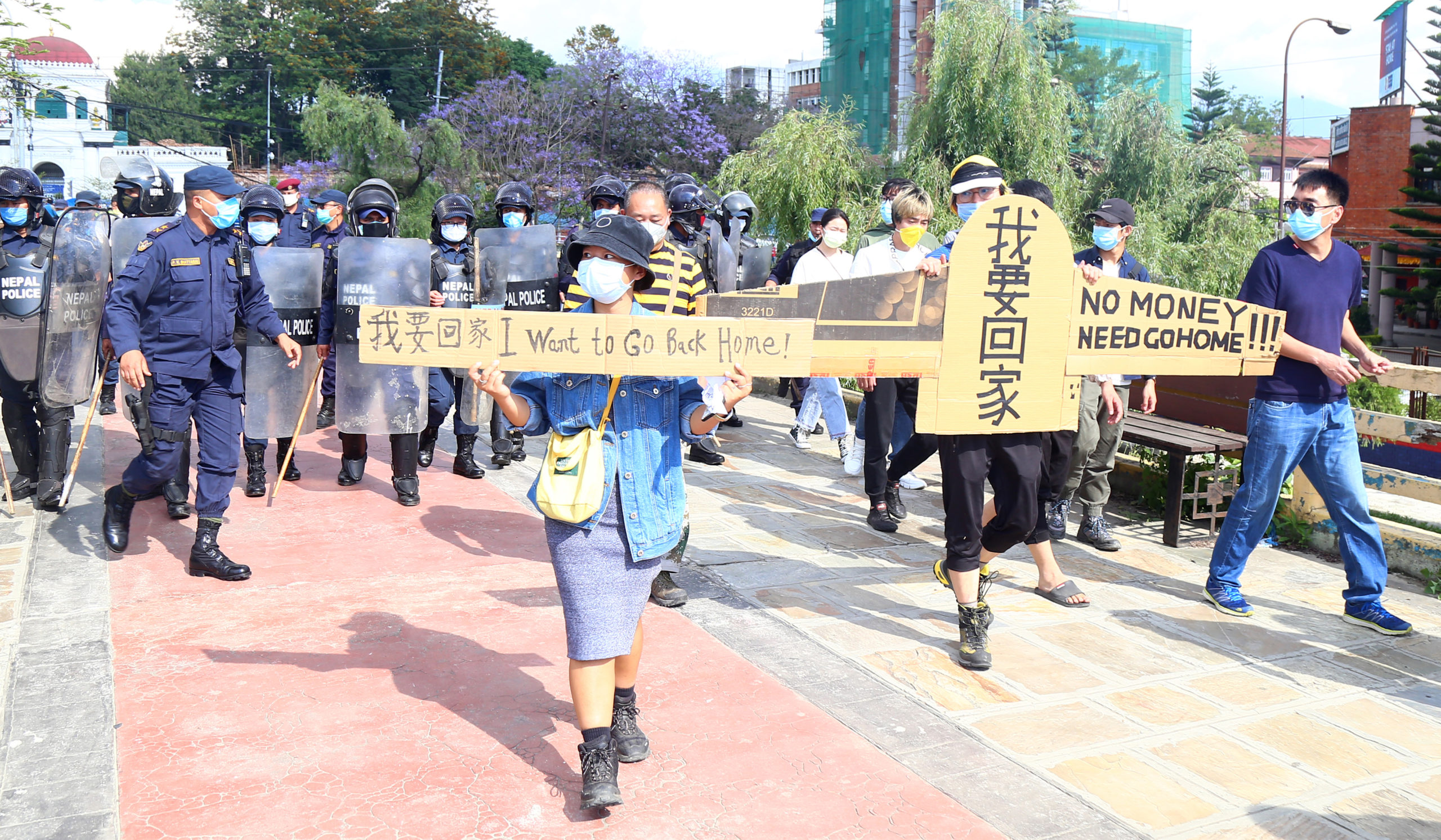 ती नागरिक घर जान पाउनुपर्ने माग राख्दै ‘वी वान्ट टु गो ब्यााक होम’ प्ले कार्ड बोकेर निषेधित क्षेत्र तोडी सिंहदरबारतर्फ आएका थिए । ‘उनीहरु निषेधित क्षेत्रतर्फ आउन थालेपछि हामीले रोक्यौँ तर उनीहरु नमानेर सिंहदरबारसम्म आए’, उनले भने, ‘सिंहदरबार आएर पनि हामीमाथि आक्रमण गरेपछि हामीले तिनीहरुलाई नियन्त्रण लिएका हौँ ।’