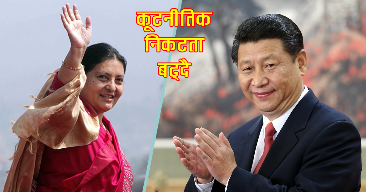 केही महिनाअघि प्रधानमन्त्री केपी शर्मा ओलीले गरेको चीन भ्रमण र राजनीतिक स्थायित्वले गर्दा चीनसँग सम्बन्ध सुमधुर र निकट हुँदै गएको छ । यसबीच चीन सरकारका विभिन्न तहका टोलीले नेपालको भ्रमण गर्दै सहयोग आदान–प्रदानको अध्ययन र सम्भावनाबारे छलफल समेत गरेका छन् । चिनियाँ र नेपाली टोलीबीच भएका समझदारीलाई मूर्तरुप दिन उच्चस्तरीय छलफल र भ्रमण हुन लागेको परराष्ट्र मन्त्रालय स्रोतले जनाएको छ । चीनसँग भएको व्यापार तथा पारवहन सम्झौतालाई राष्ट्रपति भण्डारीको चीन भ्रमणका क्रममा अन्तिम रुप दिने तयारी समेत भएको बताइएको छ ।