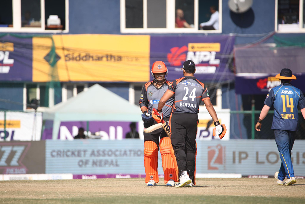 पोखराका लागि नारायण जोशीले सर्वाधिक ३० र म्याट क्रिटलेले १७ रन बाहेक अरुले दोहोरो रन जोड्न सकेन । चितवनकालागि सोहेल तनविरले ३, रिजन ढकालले ३, लुक बेन्केन्सटेइनले ३ र दिपक बोहराले १ विकेट लिए ।