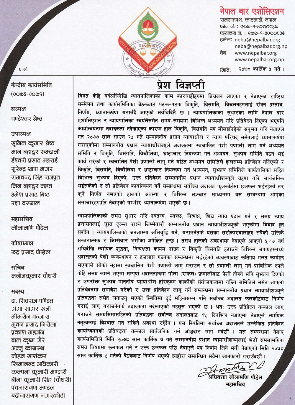 यस्तो छ नेपाल बारको विज्ञप्ती-