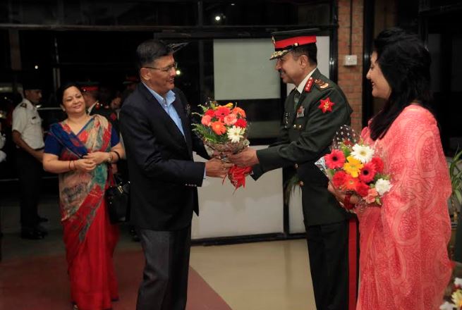 प्रधानसेनापति थापालाई बलाधिकृत रथी शरद कुमार गिरीले त्रिभुवन अन्तर्राष्ट्रिय विमानस्थलमा बिदाई गरेका थिए ।