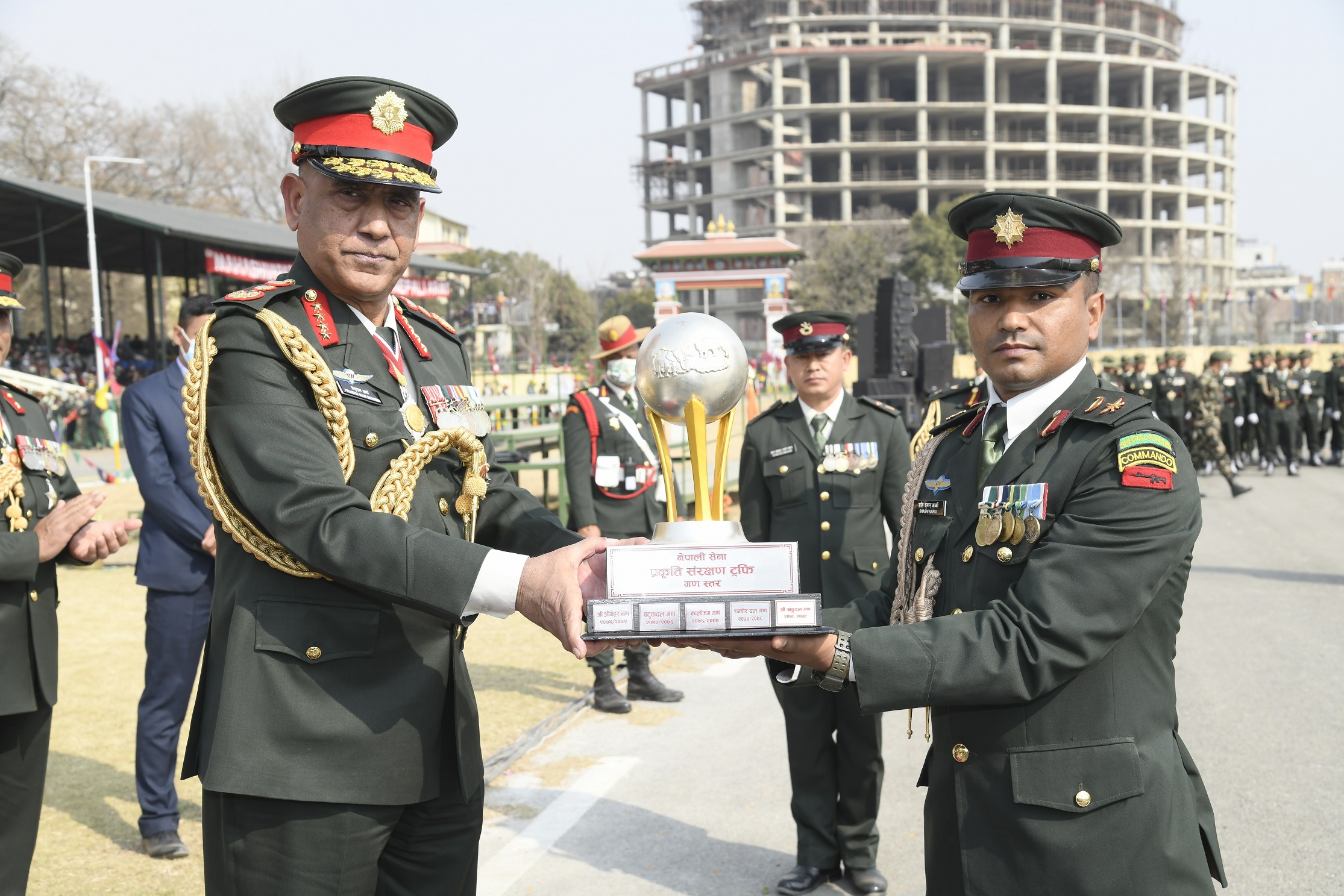 प्रधानसेनापति शर्माले सैनिक ड्रिल प्रतियोगिता, २०७९ मा प्रथम हुने उपत्यका पृतनालाई पनि पुरस्कार प्रदान गरे । उनले त्यस अवसरमा सेनाका बहालवाला रथीवृन्द सात, अधिकृत दुई सय २१, पदिक तथा अन्य दर्जा चार सय ८८ र सैनिक श्रीमती सङ्घका पदाधिकारी ११ जनालाई प्रधान सेनापति प्रशंसा निशानसमेत प्रदान गरे ।